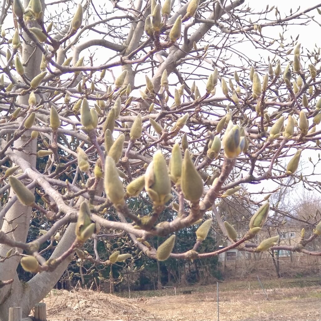 これは、大曲モデルハウスの庭にある木蓮のつぼみです。